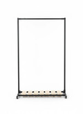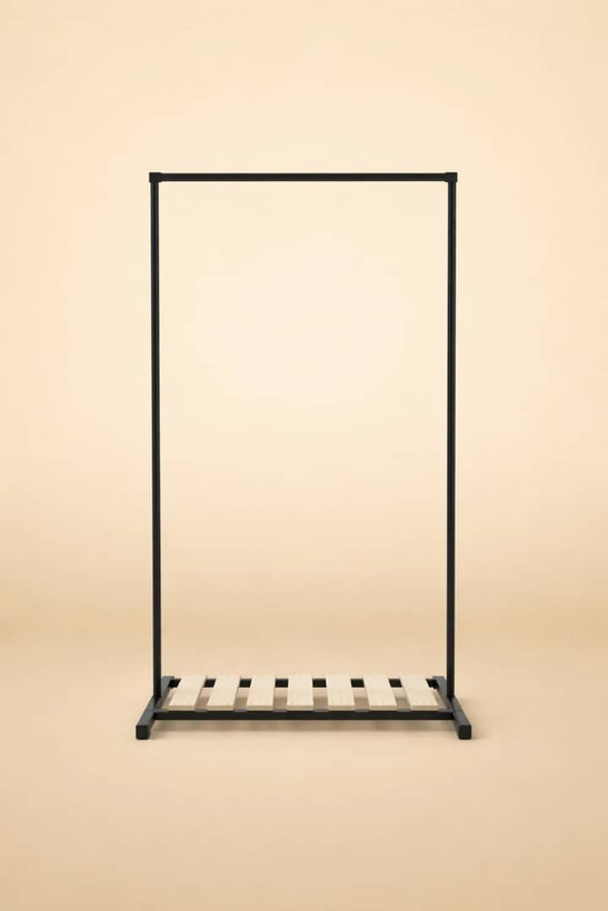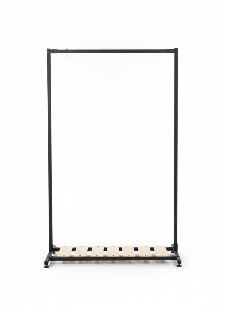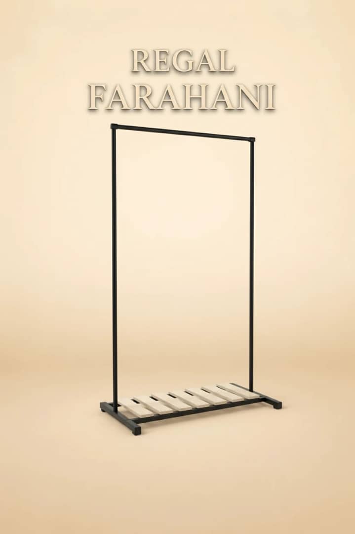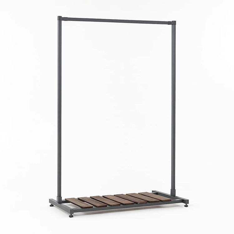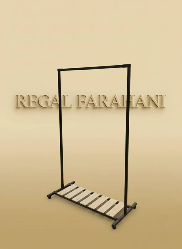 پروفیل ۲۵×۲۵ ضخیم در کنار تختههای چوبی پرداختشده، استحکام بالایی را برای تحمل وزن زیاد ارائه میدهد. در بخش بالا میتوان لباسهای بلند آویزان کرد و در قسمت پایین کفش یا کیف را قرار داد.