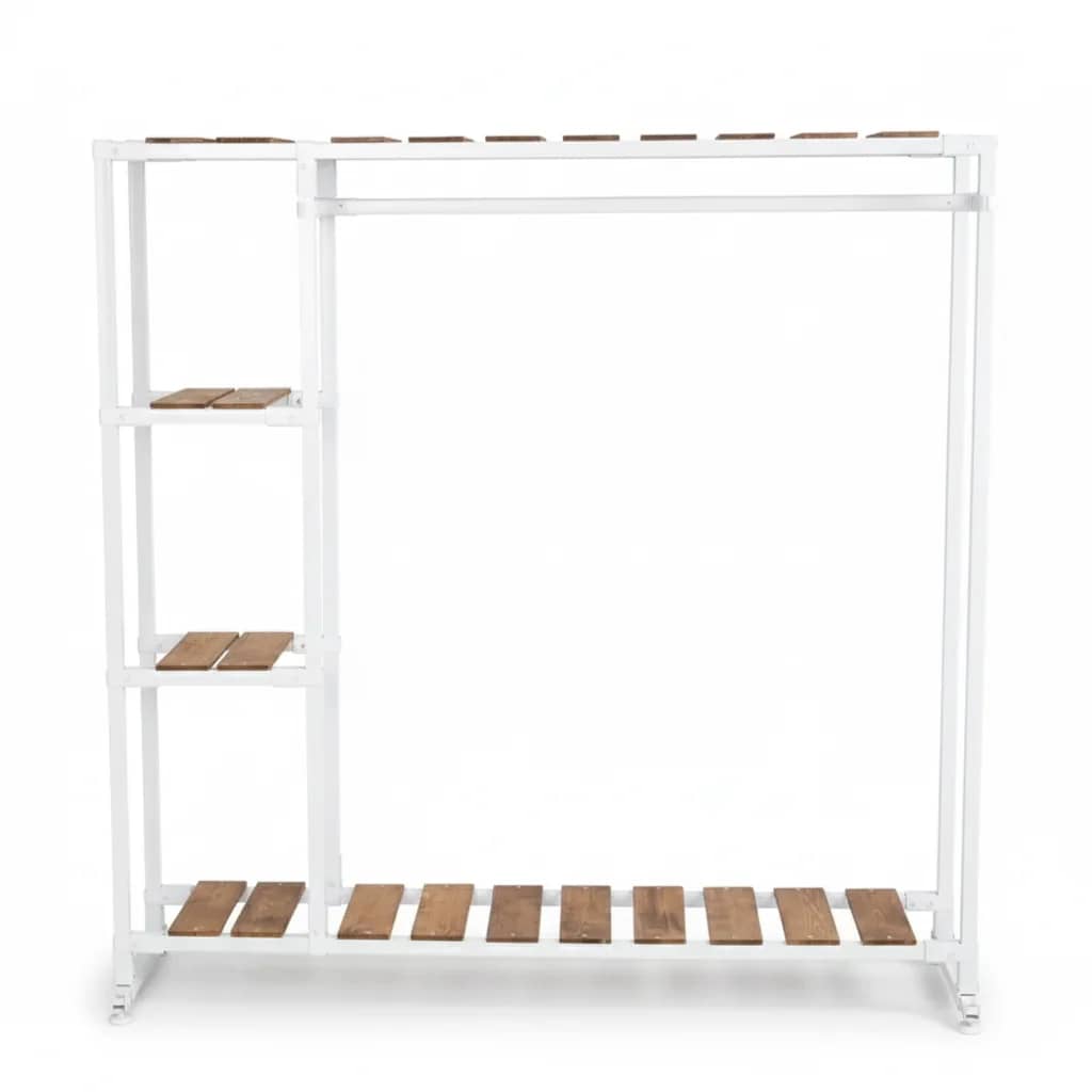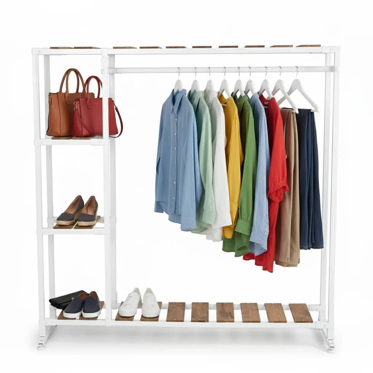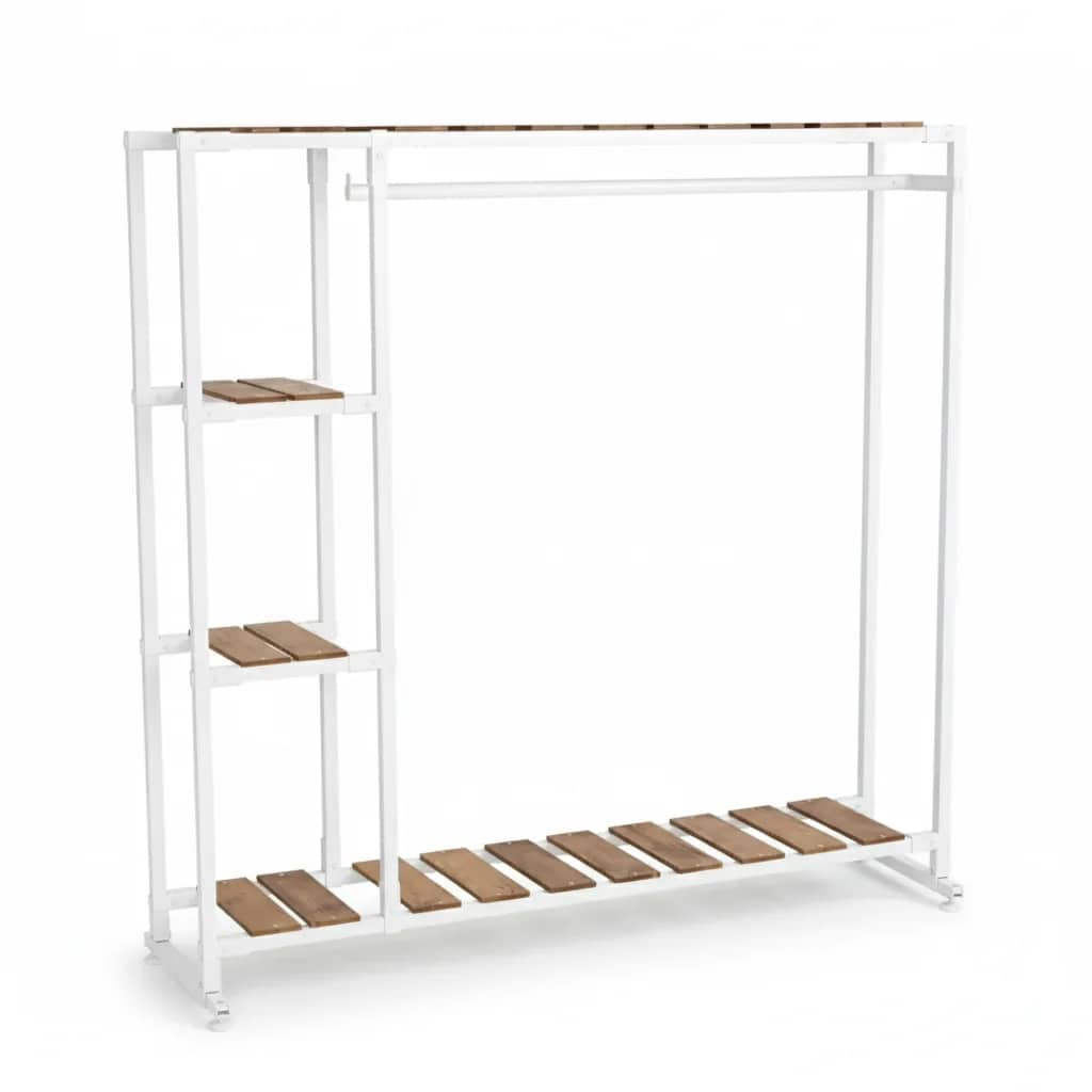 + موارد بیشتراین رگال لباس سفید با ساختار فلزی مستحکم، همزمان زیبایی و دوام را ارائه میدهد. شلفهای چوبی با رنگ طبیعی، جلوهای گرم و دلنشین ایجاد کرده و در کنار لباسهای رنگی، امکان چیدمان وسایلی مثل کیف، کفش و اکسسوری را فراهم میکند. طراحی آن به گونهای است که فضای عمودی را بهخوبی استفاده کرده و مناسب محیطهای لوکس، مدرن و حتی فضاهای کوچک است.